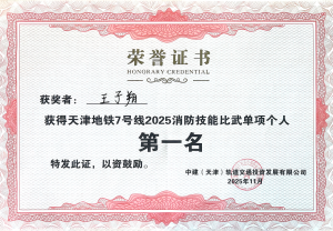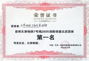 近日,在中建(天津)轨道交通投资发展有限公司举办的2025年度消防安全技能比武活动中,由京城安保驻天津地铁7号线项目安检队员王子朔等四名队员组成的客运部代表队,凭借过硬的消防技能、出色的临场发挥以及卓越的团队协作,一举荣获“团体第一名”和“单项第一名”的双项佳绩。他们在赛场上所展现出的敢打敢拼、一往无前的奋斗精神,赢得了上级领导的高度肯定与好评。