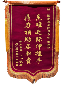 10月5日傍晚,京城安保驻国家大剧院项目安保班长王力明在执勤时,凭借高度的责任心与专业的应急处置能力,带领安保队员与现场场务人员、服务人员共同救助了一名在观看音乐演出后突发心脏病的老人。为表肯定与感谢,老人家属特向京城安保队伍赠送了一面印有“危难之际伸援手 鼎力相助尽职责”的锦旗。